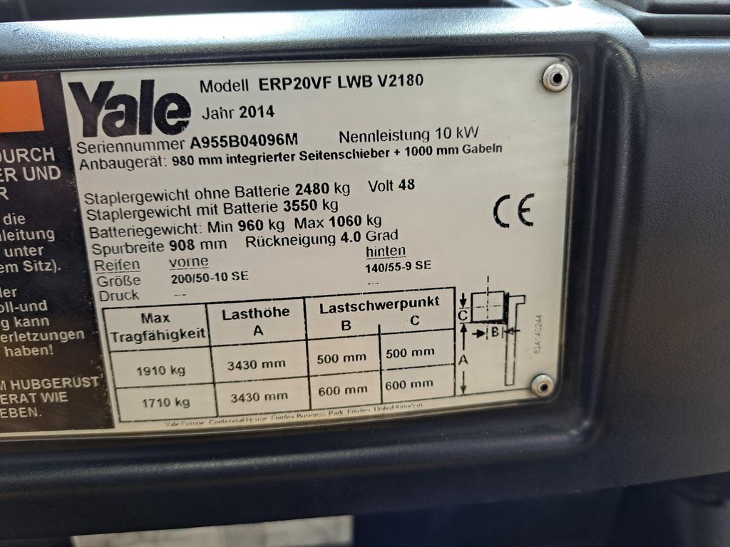 Yale ERP 20 VF LWB 4-Rad Elektrostapler gebraucht