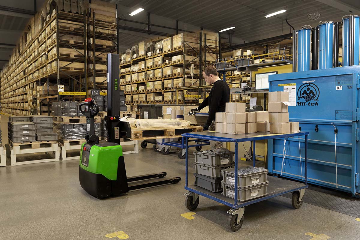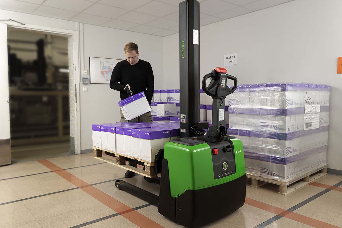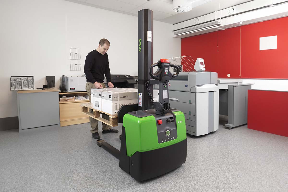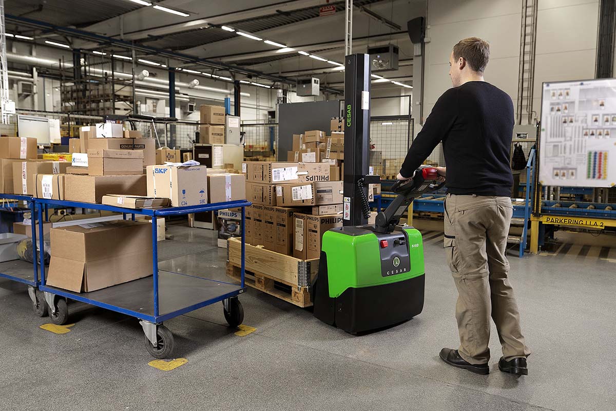 Der CESAB S110 Stapler kann für den Transport von Lasten über kurze Distanzen und für Stapelung auf niedrigen Hubhöhen genutzt werden. Der S110 ist auch ideal in der Einsatz als höhenverstellbarer ergonomischer Arbeitstisch im Kommissionier- und Sortierbetrieb.