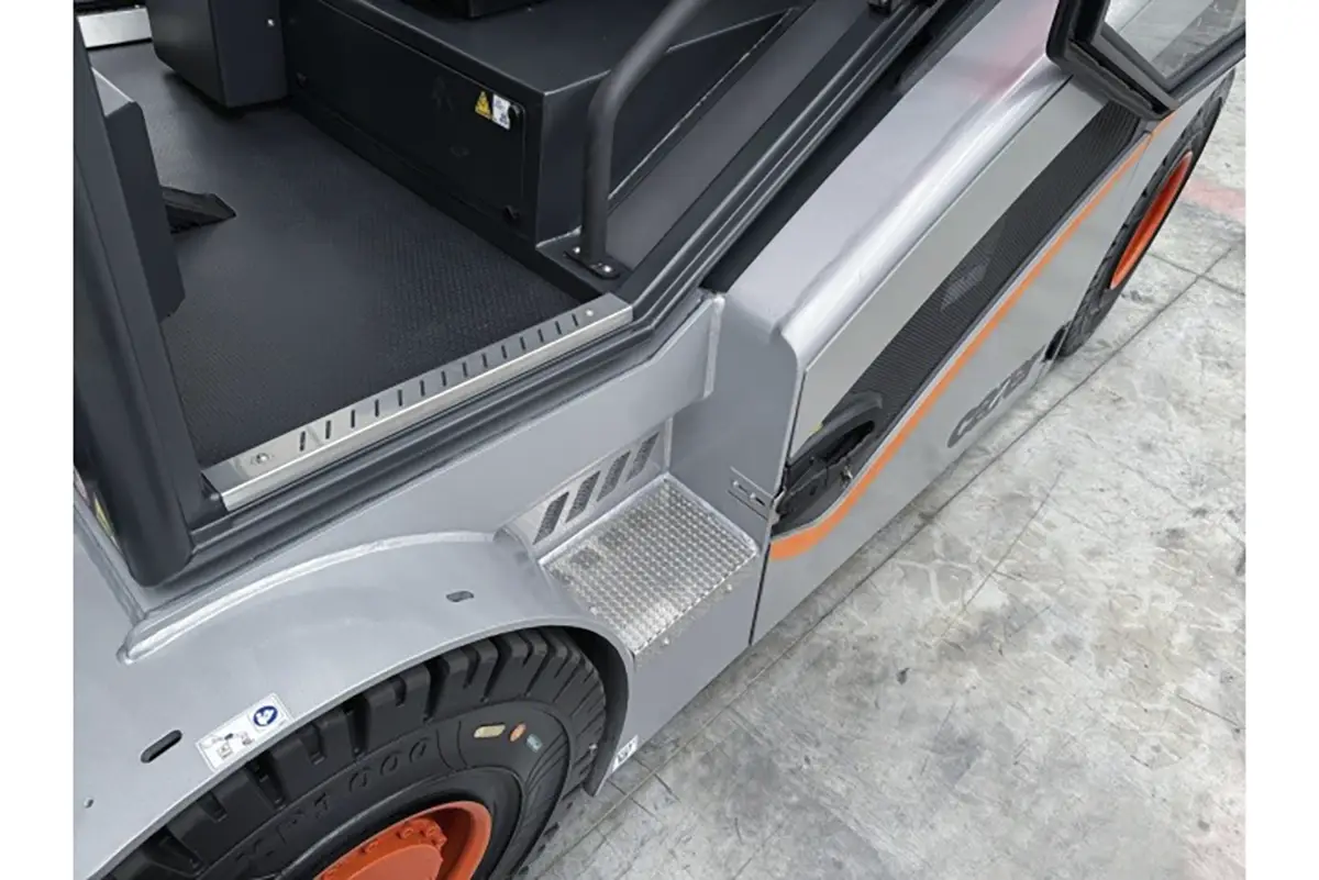 Die hervorragende Effizienz wird durch den Einsatz der besten und innovativsten Technologie auf den Markt erreicht, um die maximale Produktivität für den Anwender zu gewährleisten. Das ausgeklügelte elektrische 96V System wurde entworfen, um die geringstmöglichen Energieverluste zu erzielen. Auch das Hydrauliksystem wurde, durch den Einsatz größerer Querschnitte optimiert um möglichst hohe Effizienz zu erreichen. Der Ventilblock wird elektrisch durch Schrittmotoren in jeden Kreislauf gesteuert, um ein sehr genaues Steuerverhalten bei minimalem, Verbrauch zu gewährleisten. Das Kabinenmodul besteht aus speziell entwickelten schmalen Profilen, die eine optimale Rundumsicht ermöglichen. Das Modul ist auf Schwingungsdämpfern gelagert wodurch eine perfekte Isolation in Bezug auf Geräusche und Vibrationen erreicht wird. Zudem bieten die Pumpen- und Fahrmotoren durch ihre Bauweise einen sehr leisen Lauf in jeder Fahrsituation. Der Fahrerplatz ist geräumig und hat einen großzügigen Fußraum. Die Lenksäule ist in Höhe und Neigung stufenlos verstellbar.